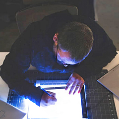 He is equally competent in the world of motion graphics and editing.  His day job is as an animator and motion graphics artist at AMP Creative Studio in Dallas, Texas.  For Crew 713, Justin is producing the integral animated segments which help to tell the mission stories of the 492nd bomb group.  And, as Dancing Fish Productions, he is also serving as one of the film's producers.
